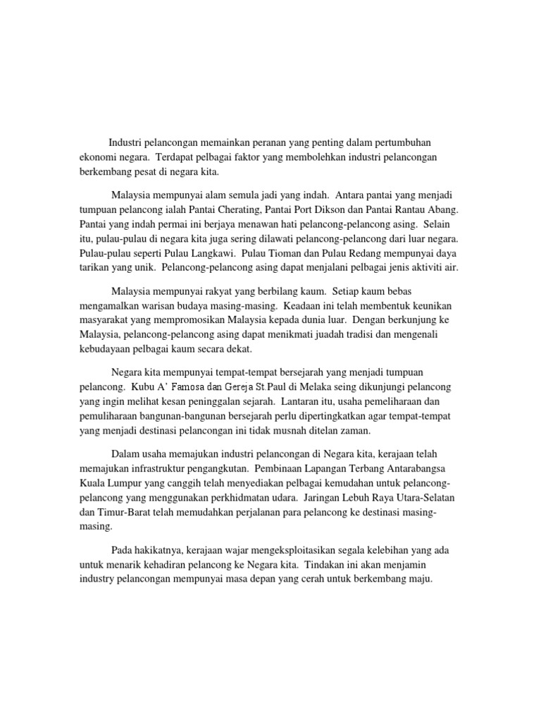 Contoh Karangan Bm Kepentingan Sektor Pelancongan Kepada Rakyat Dan Negara Wattpad